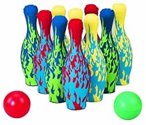 Small World Toys 7301491 Ten neoprene-covered pins are silkscreened with a bright hot-rod style flame pattern in 3 different color schemes A real bowling set for kids to use at home! A soft, water-filled bowling set created from lightweight, hollow plastic Small World Toys is focused on developing and delivering the safest and highest quality products for children Small World Toys believes that play is an integral and necessary part of a child's development and education ...
